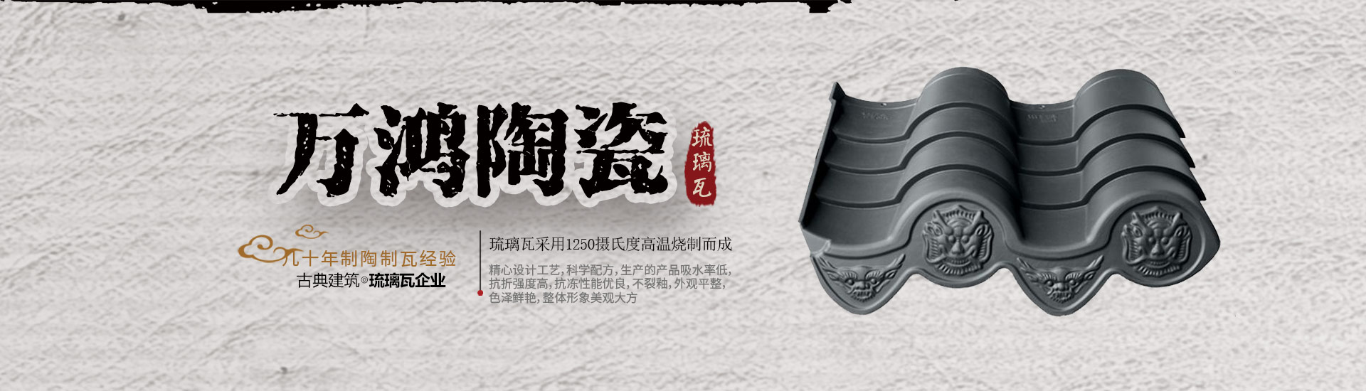 宜興市萬鴻陶瓷有限公司是國內(nèi)生產(chǎn)古建琉璃瓦企業(yè),也是宜興市琉璃瓦行業(yè)龍頭骨干企業(yè)。琉璃瓦采用1250攝氏度高溫?zé)贫?,公司座落?jīng)濟發(fā)達的宜興市丁山鎮(zhèn),臨近寧杭高速公路、新長鐵路、錫宜高速和104國道,交通十分便利?! ∪f鴻陶瓷擁有幾十...